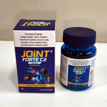Glucosamine Sulphate 500mg, Hydrolysed Collagen PeptideType-II 150mg.,Omega-3 Fetty acids 150mg., Chondroitin Sulphate 100mg., Curcuma Longa root extract 50mg, Boswellia serrata-gum resin extract 50mg, Rosehip Extract 40mg. with Multiviamin & Minerals tablets